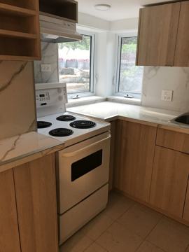 This is a 2.5 storey home in Seaton Village with three apartments. The Lower/Basement apartment is available for September 1, 2021. Rent is 1575/month plus utilities. The Apartment is very bright with large windows facing the landscaped Garden at the front of the house. Fully Renovated everything new 2019/2020. Floors are all Porcelain tile white colour. There are 3 rooms including Kitchen, new cabinets tile counters and appliances, Living Room bright large window facing landscaped garden, concealed LED lighting, spacious with room for an L shaped couch and a table with 4 chairs or a desk area, and Bedroom with room for a queen sized bed, and a Ensuite new finished bathroom with a large porcelain tile shower, vanity, toilet and full wall mirror. Great lighting throughout the apartment with LED lights for low energy use. Laundry is shared with the other 2 apartments. This apartment has a private entry direct from the outside at the side of the house and a second exit to the rear through the laundry room. It is located on a very quiet street in the heart of Seaton Village close to Vermont Square park, shopping, bike share, TTC, schools, etc. Available for September 1, 2021, 1575+utilities. One year lease.