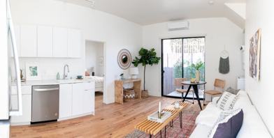 Lovely 1 bed / 1 bath newly built stand alone unit (like a baby house!) Roomy closet, high ceilings, gated back outdoor area (perfect for your pet!), 1 parking space and best of all a private rooftop deck!