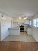 Spacious 1 Bdrm/1 Bath upstairs unit in a fourplex equipped with a stainless steel gas kitchen range/oven, dishwasher and garbage disposal. Wood laminate and tile flooring throughout. Estimated approx 863 square feet of living space with extra large bedroom and plenty of closet space. Single car detached garage provided and street parking also available. Located near Sandpointe Park and Southcoast Plaza.