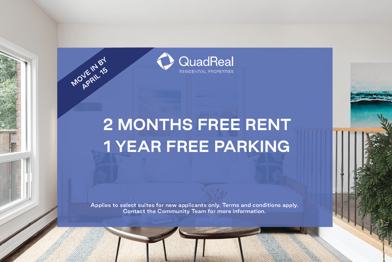 Rent Special available! 2 Months Free Rent Applies to select suites for new applicants only. Terms and conditions apply. Contact the Community Team for more information.