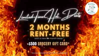 Rent Special available! TWO MONTHS RENT FREE + $500 GROCERY GIFT CARD Receive 2 MONTHS RENT-FREE + $500
