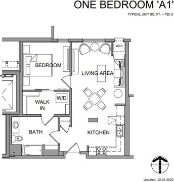 A modern and spacious one-bedroom apartment featuring granite countertops, a washer and dryer, a dishwasher, an ice maker and a Walk-in closet.