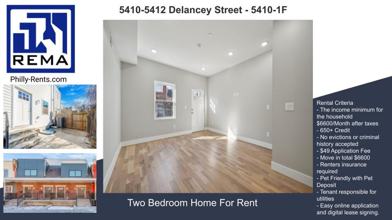 5410 Delancey Street 5410 Delancey St, Philadelphia, PA is a rental apartment building with 2 floorplans available. It is located in the Cobbs Creek neighborhood of Philadelphia. It has apartment amenities including on-site laundry, microwave, air conditioning, and dishwasher. It has building amenities including outdoor space.
