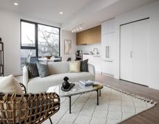 The unit has air conditioning, heating, in-suite laundry, and a car-share vehicle for residents use.