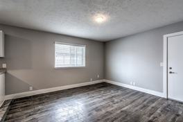 This large one-bedroom apartment features wood flooring, new carpet, spacious closets, and fresh paint. There is also plenty of off-street parking. Go anywhere in the city in minutes with easy interstate access. (Flooring and cabinet colors vary by unit)