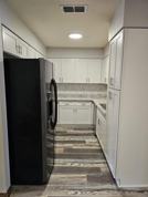 Convenient for commuters and close to shopping and restaurants, this 1,200 square-foot 2-bedroom, 2-bath townhouse features cathedral ceilings with the living room opening into the dining area. The giant master bedroom suite includes a large walk-in closet and spacious walk-in attic storage. Appliances include a stove/oven, microwave hood, dishwasher, and a side-by-side refrigerator. The downstairs bedroom features double closets. Both bedrooms have attached bathrooms; the downstairs bathroom is also accessible from the hallway. There is a laundry room with washer/dryer hookups. Enjoy a covered porch in front and a shaded, fenced-in area in the back. The apartment is all-electric with central A/C and heating. Two assigned parking spaces are located in front of the unit Water and Trash are provided. Resident is responsible for energy