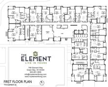 Common area amenities include Fitness Center, Lobby Lounge with Fireplace, Coffee Bar, Meeting/Work room, Two Elevators, Top Floor Indoor/Outdoor Club Room with Fireplace with views to Lambeau Field, and an Outdoor Sheltered Plaza with Two Grilling Stations and Two Fire Pits.