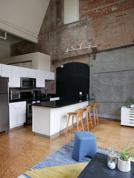 Experience modern loft-style living in this spacious 1-bedroom, 1-bathroom apartment featuring polished concrete floors, exposed brick, and oversized windows that fill the space with natural light. The newly renovated kitchen boasts stainless steel appliances, granite countertops, solid wood cabinets, and a sleek glass mosaic backsplash. The upgraded bathroom offers new vanity, granite counters, modern lighting, and fresh hardware throughout. Enjoy the open layout—perfect for relaxing, working, or entertaining.
