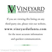 If you are viewing this listing on any third-party site, please visit our website, www vineyardatlanta com for the most accurate information and quickest communication.