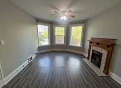 As you step inside, you're greeted by a spacious living and dining room combination, bathed in natural light from the large bay windows. During the summer months, these windows are adorned with lush green ivy, creating a serene and picturesque view. Both bedrooms are generously sized, providing ample space for relaxation and rest. The master bedroom, in particular, stands out with its impressive dimensions, large windows, and abundant space, offering a peaceful retreat.