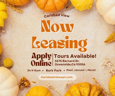 At Carlsbad View Apartments, find luxury apartments living in a lush park-like setting within a gated community. Our spacious one- and two-bedroom apartment homes come standard with washer/dryer hook-ups*, stainless steel appliances*, crown molding, designer paint, ceiling fans, gas fireplaces*, spacious closets, private patios/balconies with extra storage, and complimentary carport. Our on-site amenities include a swimming pool, jacuzzi, fitness center, business center, lighted tennis courts, dog park, assigned covered parking and BBQ area. You’ll enjoy lounging under the shade swaying palm trees surrounding our resort-style pool or watching the sunset from your private patio or balcony. We’re here to welcome you to a better way of living.