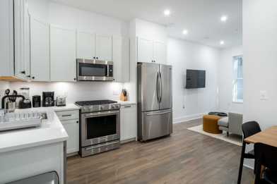 Your private bedroom includes a bright, stylish space with its own private bathroom. Shared areas feature a fully equipped gourmet kitchen with bar seating and a cozy living room—great for streaming, study sessions, or hanging out with roommates.