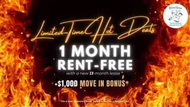 Rent Special available! FIRST MONTH RENT FREE + $1000 MOVE-IN BONUS! Receive 1 MONTH RENT-FREE + $1000 MOVE IN BONUS! This limited time offer applies to new applications with a new 13-month lease term.