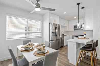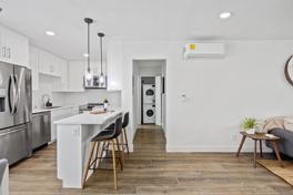 NEWLY Remodeled 1BD 1BA W/ Patios/ Balconies apartments with: Shaker white cabinets in the kitchen and bathrooms, white quartz counters, tile floors in the bathroom, stylish wood laminate floors in the living room, kitchen & bedrooms, SOAKING (DEEP) tub, STAINLESS STEEL APPLIANCES (dishwasher, range, microwave & refrigerator), WASHER and DRYER & AC in unit, fixtures and SMOOTH CEILINGS throughout!