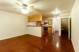 Contemporary town home in great central location. Only 4 units in cul-de-sac complex, each with stained concrete floors, open floor plan, and a private low maintenance yard. Central refrigerated air, higher end / modern finishes and fixtures, full stainless appliance package in kitchen, and a high efficiency front loader washer/dryer set give this home real comfort and add to its urban appeal. The full Bath includes a double vanity and great custom tile work, while the master bedroom includes a walk in closet. 1+ car attached garage with automatic opener - rare opportunity to rent such an updated home in Parkland Hills/ Ridgecrest. Both bedrooms upstairs. Close to freeways, Nob Hill, UNM; across the street from Highland High school, great community pool, shopping and restaurants.
