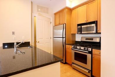 This spacious unit offers maple hardwood floors throughout, 10' ceilings, private balcony, marble baths, gas fireplace, crown molding, and is pre-wired for cable/high speed internet. The master bedroom offers a large walk-in closet. The stunning gourmet kitchen offers granite countertops, solid maple cabinetry and full-size stainless-steel appliances with dishwasher, gas range, frost-free refrigerator and microwave. A washer and dryer in-unit makes doing laundry convenient.