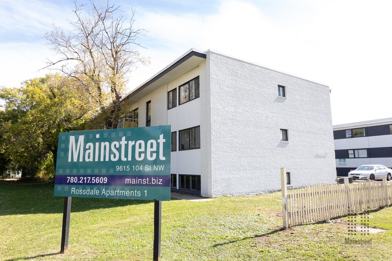 Property Description Some places are just perfectly located. When you’re looking for apartments for rent in Rossdale, Mainstreet’s Rossdale Apartments 1 is your best choice for a place you can truly call home. Pet-friendly , smoke-free, and in a great location, the only thing better about this building is the affordability. Boutique suites feature either high-grain laminate, comfortable carpet, or classic hardwood flooring, and all come ready for the quickest cable and internet connections. We include your fridge, stove, and window coverings, provide onsite laundry facilities, as well as security patrols for your peace-of-mind. This complex is low-density, meaning fewer people enjoying more space to themselves with less noise. To maximize your affordability, we even cover your heat and water bills. Don’t get left out in the cold, claim your new home by [applying online now](https secured-forms com reply-to mainstreet rental-application)! 1 Bedroom Amenities - Laundry facilities - Convenience store - Fridge - Stove - Carpeted floors - Hardwood floors - Individual thermostats - Cable ready - Window coverings - Public transit - Shopping nearby - Parks nearby - Schools nearby - Internet ready - No Smoking allowed - Laminate floors - Secure entry - Patrol Security - Secure entry Utilities Heat, Water Community Whatever apartments for rent in Rossdale you check out, we know you’ll select Mainstreet’s Rossdale Apartments 1 for your next home because the location and affordability cannot be beat. Major transit on 97th Avenue is only a few steps up the block, you’re just steps from the River, and there are great bike and pedestrian trails nearby. - Four-minute drive to Holy Child Catholic Elementary School - Four-minute drive to Centre High Campus - Seven-minute drive to groceries at Save-On-Foods - Two-minute drive to the Legislature of Alberta The perfect place at the perfect price. Start moving into your new home today, [apply online now!](https secured-forms com reply-to mainstreet rental-application) Suite availability, rental rates, included utilities, and incentives are subject to change without notice. Security deposit amounts may vary based on credit history, rental history, and risk assessment. Rental rates are net and include applicable incentives, based on a one-year lease term. Incentives apply to new applicants only and cannot be combined with other offers. Suite images are for reference only; actual suites may differ. Valid renter's insurance is required for all residents. Additional conditions may apply.