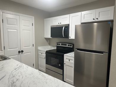 Renovated homes feature washer & dryer, built-in microwave, and ceiling fans for added ease and comfort