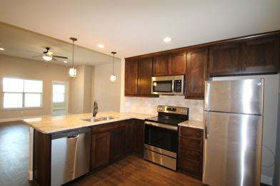 Gorgeous three-bedroom two-bathroom duplex with a one-car garage. Your new home is not only beautiful but energy-efficient! The home features a spacious living room with high ceilings and plank flooring. You will find your open concept kitchen with custom cabinets, granite countertops, and all stainless-steel appliances. The spacious laundry room is next to the kitchen where you will have full-sized W/D connections and built-in shelves for all of your storage needs. Need a place to relax after a long day? Your master suite is the place to be. Large space with upgraded carpet and ceiling fan.