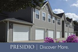 Nestled among 200 acres of wooded grounds, Presidio is an upscale, gated community where you can escape from city life without being miles away from it. Experience all the luxuries of a world-class resort, but with a hometown atmosphere. Presidio offers some of the largest floor plans in the area, one, two and three-bedroom apartments and townhouses ranging from 1,370 – 2,110 square feet. Each unit features attached garages with remotes and enclosed climate-controlled common area hallways which allows you to stay warm and dry during bad weather.