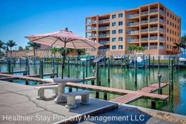 Robin's Nest - Beautiful 1 BR/1Bath with Gulf Beach Access and on a Canal - Lease rates starting at $2,750 a month for extended stays. Short term rental rates are also available. Robin's Nest is an oversized 1 bedroom/1 bathroom condo located just two blocks from Treasure Island's gulf beach. Condo is on a quiet canal. Watch sunsets every night from the sitting area on the beautiful canal or take a dip anytime in the heated pool. Water view from the bedroom, outside sitting area on the canal, private dock, heated swimming pool, laundry facility onsite, . Unit has a full kitchen, king bed, dresser, TV in bedroom, 2 sofas (sofa/bed), TV in the living room and a shower/tub in the bathroom. Unit comes fully furnished, and includes cookware, linens, bedding and towels. Price includes utilities and wifi.