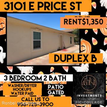 3101 E Price St. 3101 E Price St, Laredo, TX is a rental apartment building with 5 floorplans available. It is located in the Ghost Town neighborhood of Laredo. It has apartment amenities including in-unit laundry. Cats and dogs are allowed, making it a pet-friendly building.
