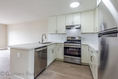• Kitchen with breakfast counter, dishwasher, and gas stove