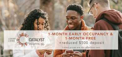 Catalyst residences are designed and constructed to high quality standards and modern design. With and one- and two-bedroom options, each suite is equipped with full-size stainless-steel appliances, 9-foot ceilings, ample storage and closet space, sleek quartz counter surfaces in the kitchens, top notch Kohler fixtures and faucets as well as spacious patio spaces in select suites! At Catalyst, you have the option of selecting fully furnished suites as well as air heat and air conditioning options.