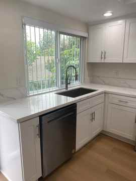 This stunning upper floor 2-bedroom, 2-bath unit is situated in a gorgeous, spacious corner lot setting and has undergone extensive top-to-bottom renovations. As you enter, you're greeted with fresh designer paint and stylish birch plank floors throughout the main living areas. The open-style living room and adjacent dining area offer ample space for gatherings, with access to a balcony for outdoor enjoyment. The sleek modern kitchen features quartz countertops, upgraded stainless steel appliances, generous cabinet space, and a sleek stainless farmhouse-style sink. Recessed LED lighting throughout adds to the contemporary ambiance. The primary suite boasts a completely remodeled bath with barn-style shower and tub doors, while all bedrooms feature ample closet space. Outside, you can relax and entertain in the semi-shared patio area. The detached 1-car garage comes equipped with washer/dryer hookups for added convenience. Conveniently located within walking distance to a park and library, and just a short distance from the beach, shopping, dining, and award-winning schools, this unit offers an unbeatable location.