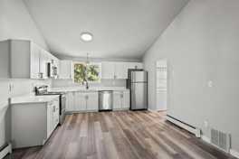 Modern/contemporary upgrades w/ condo quality finishes. Large apartment, all renovated. New kitchens w/ quartz countertops, new bathrooms (w/ tub), in-unit laundry, high performing A/C wall unit, and nice large patio. Renovations included all windows and doors (homeowner grade).