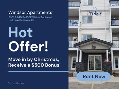 Rent Special available! $500 Bonus Move in by Christmas, Receive a $500 Bonus* *Terms & Conditions Apply