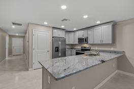 Entertain your friends and family in the gourmet kitchen with granite counter tops, stainless steel appliances and large breakfast bar that is open to the spacious living room. Just off the main living space is the well appointed guest bathroom with a shower tub combo accented by modern tile and an oversized vanity with granite counter top.