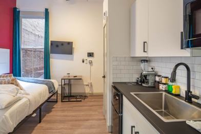 Welcome home to Windsor Apts., originally built in 1887 and updated in 2022. Live in our historic building downtown across from Balboa Theater and above Bandar Restaurant. These quaint micro-studios are fully furnished with housewares included. There is a Roku TV, digital keyless entry, private in-unit bathroom, and kitchenette.