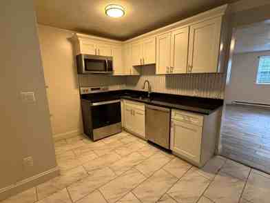 This recently renovated two bedroom apartment features wood-like tile floors throughout, granite counters, stainless steel appliances, a tiled bathroom, and in-unit laundry! Tenants can take advantage of off-street parking and easy commutes all over the South Shore. Our building is located minutes off of Route 3 allowing for easy access into Boston!
