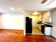 Hardwood floors, crown molding & kitchen with dishwasher, microwave, stove/oven, and fridge, and granite counter top. Wall AC and Central Heat.