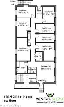 145 N. Gill St. - House (Unfurnished) - Recently renovated 10 bedroom 3.5 bath house located within minutes to campus & downtown! This house has an upstairs kitchenette and an extra large kitchen on the lower story. With close proximity to the IST & Engineering buildings, the location can’t be beat!