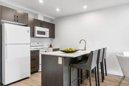 Each suite features quartz countertops in kitchens and bathrooms, luxury vinyl plank flooring, in-suite laundry, and Whirlpool appliances. Residents also enjoy large balconies, soft-close cabinetry, and additional soundproofing for extra privacy.