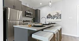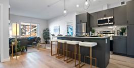 - In-suite Luxury – every 1 and 2-bedroom unit features in-suite laundry, stainless-steel appliances (dishwasher included), quartz countertops, extended designer cabinets, luxury vinyl plank flooring, and oversized patio doors that flood the space with light.
