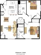 Two buildings at Hidden Hills Apartments feature both one and two-bedroom apartments. All units include a kitchen with snack bar and pantry, dining area, gathering room, and full-sized washer and dryer in unit. Some units also offer a home office. Other features include LVP flooring and quartz countertops in the kitchen.