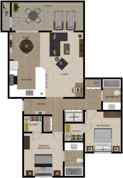 RiverStone Villas will provide you with the most beautiful river and park views and luxurious features. We pride ourselves on spacious living with the highest quality materials such as stainless steel appliances, farm-style kitchen sinks, quartz countertops, and LVP wood flooring. We offer spacious floor plan options with one, two, or three bedrooms to accommodate your needs. Our community features a swimming pool, hot tub, walk-in closets, storage closets, fitness center, walking trails, a large dog park, sport court, soccer/grass field, and more.