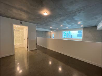 • Polished concrete floors and exposed concrete ceilings