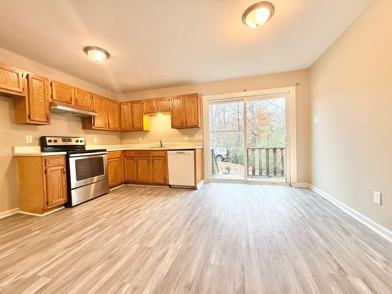 This 2 bedroom 1.5 bathroom unit is spacious and family friendly. This home offers a large living room, half bath, and large kitchen on the first floor. The kitchen comes equipped with a stove and dishwasher for your convenience! Off the kitchen the sliding doors offer a nicely sized back deck with a wooded area behind leading to a beautiful serene creek. The second floor has two large spacious bedrooms and a large full size bathroom. These rooms offer ample space and comfortability.