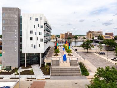 The Arts Mall is a brand new complex located in Downtown Waterloo next to the River Loop Amphitheater. With 72 units, you are sure to find a unique space to fit your needs! Each unit features slate finished appliances, vinyl flooring, and quartz counter-tops and offers a view of the Cedar River. Located in Downtown Waterloo, you will have easy access to local breweries, restaurants, the Cedar Prairie Bike Trail, and much more!