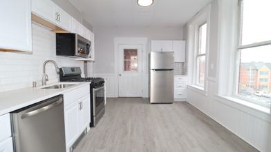 This RENOVATED 2 Bedroom Apartment on 2nd floor is BEAUTIFUL. Newer eat-in kitchen cabinets, contemporary granite countertop, 4 stainless steel appliances, and modern backsplash gives apartment an amazing feel that will impress you and your guests! Large Living room with with oversized window facing interior deck. Waterproof flooring throughout including dining room, kitchen, living room makes apartment feel larger and easy to clean. Spacious bathroom a tub for your convenience. Bedroom 1 is long and narrow and Bedroom 2 is larger then typical. Gas heat hot water to keep your heating expenses low. Coin-Op laundry facility on 2nd floor with multiple washers and dryers. Security Cameras on common area and exterior for your piece of mind. Well maintained building condition for your enjoyment. First, Last, plus Security Deposit required with a 1 year lease agreement. Sorry, no pets.