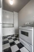 This charming Studio flat offers hardwood floors, high ceilings and a walk-in closet. Original hex tile flooring, black & white accents as well as glass hutches are sweet features. Off-street parking is an option.