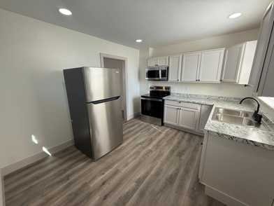 As you walk in, you’re welcomed into a spacious living room that flows directly into an equally large dining room, offering plenty of room to relax or entertain. The kitchen features a modern feel with brand new appliances, including a stove, refrigerator, and over-the-range microwave.
