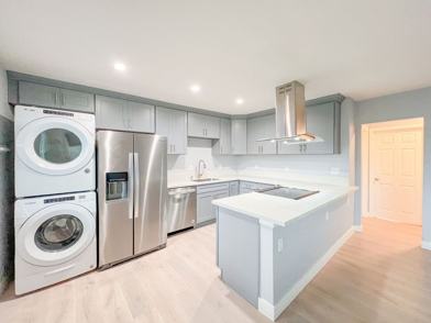 We are proudly offering for rent this beautifully remodeled 2 bedroom 1 bath apartment in the city of Long Beach. The apartment is approximately 800 square feet with vinyl plank floors, two tone paint, gorgeous new kitchen and bath cabinetry, vinyl windows, quartz kitchen & bath countertops, a stunning tile shower wall, bathroom tile flooring, stainless steel kitchen appliances (stove, dishwasher, refrigerator), ceiling fans, blinds and in unit laundry hookups with machines. The apartment is very close to Downtown Long Beach. Hurry, this unit won't last long. The apartment requires renters insurance.