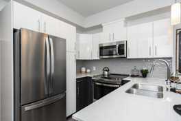 Each geothermally heated suite features stunning quartz countertops, premium lighting, stainless steel kitchen appliances, an in-suite washer & dryer, in-suite a/c, and access to all our building's curated amenities, including heated underground parking.