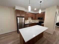 Apartment Features - Spacious layouts with tall ceilings, keyless entry system, high-end kitchens with warm walnut cabinets, quartz countertops and pendant lights, personal climate control with A/C, private deck and front-load washer and dryer in every unit.