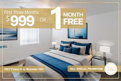 First Month's Rent Free or $999 for 3 Months (ONLY if you move in by November 14th)